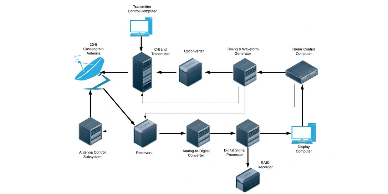 The WideBand-COherent Signal Processing radar was developed by XonTech, Inc. in the 1990s. It has at least 20-ft Cassegrain antenna and 3-MW C-Band Klystron transmitter. The backend electronics includes the following: